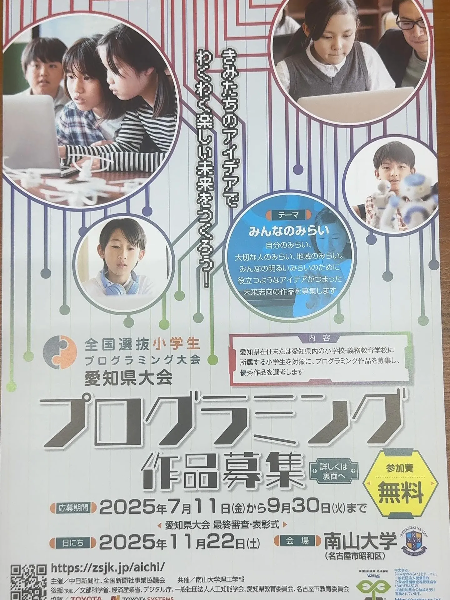 🔍 今年のテーマも「みんなの未来」🔮。このテーマには、みんなが考える未来の姿を自由に表現してほしいという願いが込められています。お子様のアイデアを形にし、一緒に素敵な未来を創り出しましょう!🚀😄 ご応募お待ちしております!